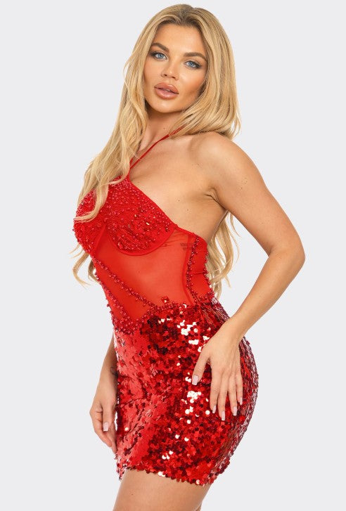Lady In Red Sequin Mini Dress