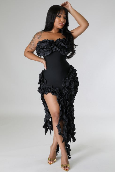 Look At Me Bandage Ruffle Mini Dress Black