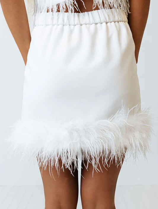 Feather Trim Mini Skirt Set