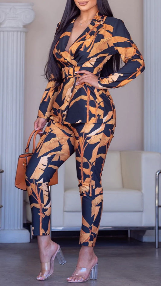 Power Suit Pants Set Tropical Print